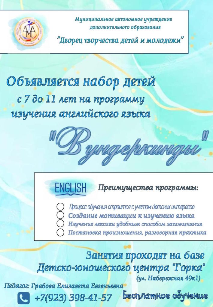 Приглашаем детей стать частью удивительной группы изучения английского языка «Вундеркинды»!