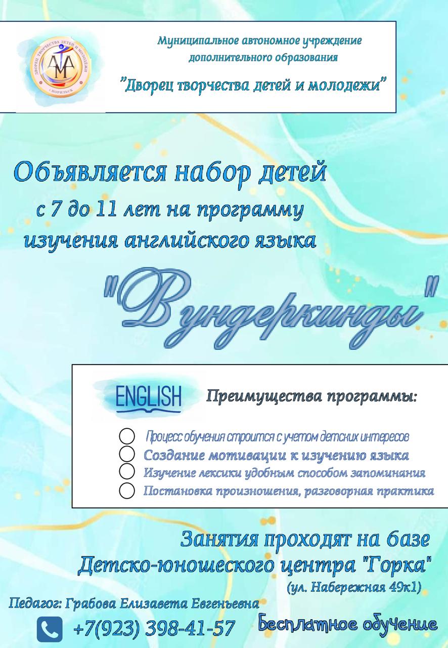 Приглашаем детей стать частью удивительной группы изучения английского языка «Вундеркинды»!