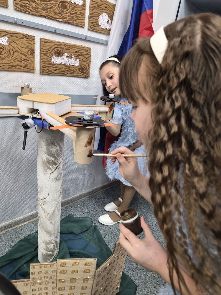 Но самой яркой частью стала творческая лаборатория. Дети с удовольствием превратились в настоящих мастеров, создавая воздушные самолётики и нежные облака, кто-то из ребят раскрашивал квадрокоптер в камуфляжные цвета для потрясающей фотозоны. Дрон получился почти настоящим, парящим в облаках над городом.