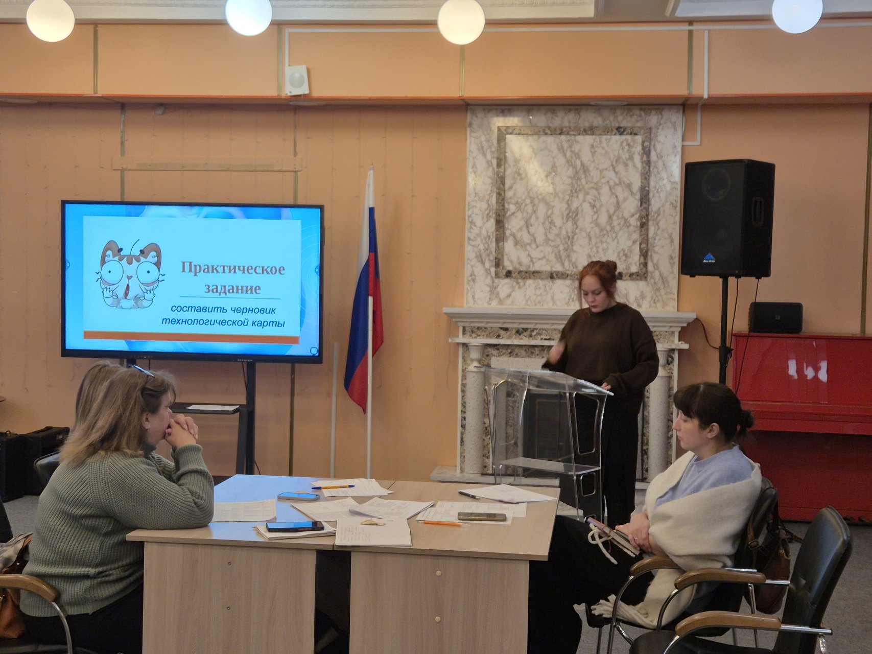 В практической части занятия педагоги создавали свои первые технологические карты и презентовали их другим участникам кадровой школы. Это было время обмена опытом, обсуждения идей и поиска новых решений.